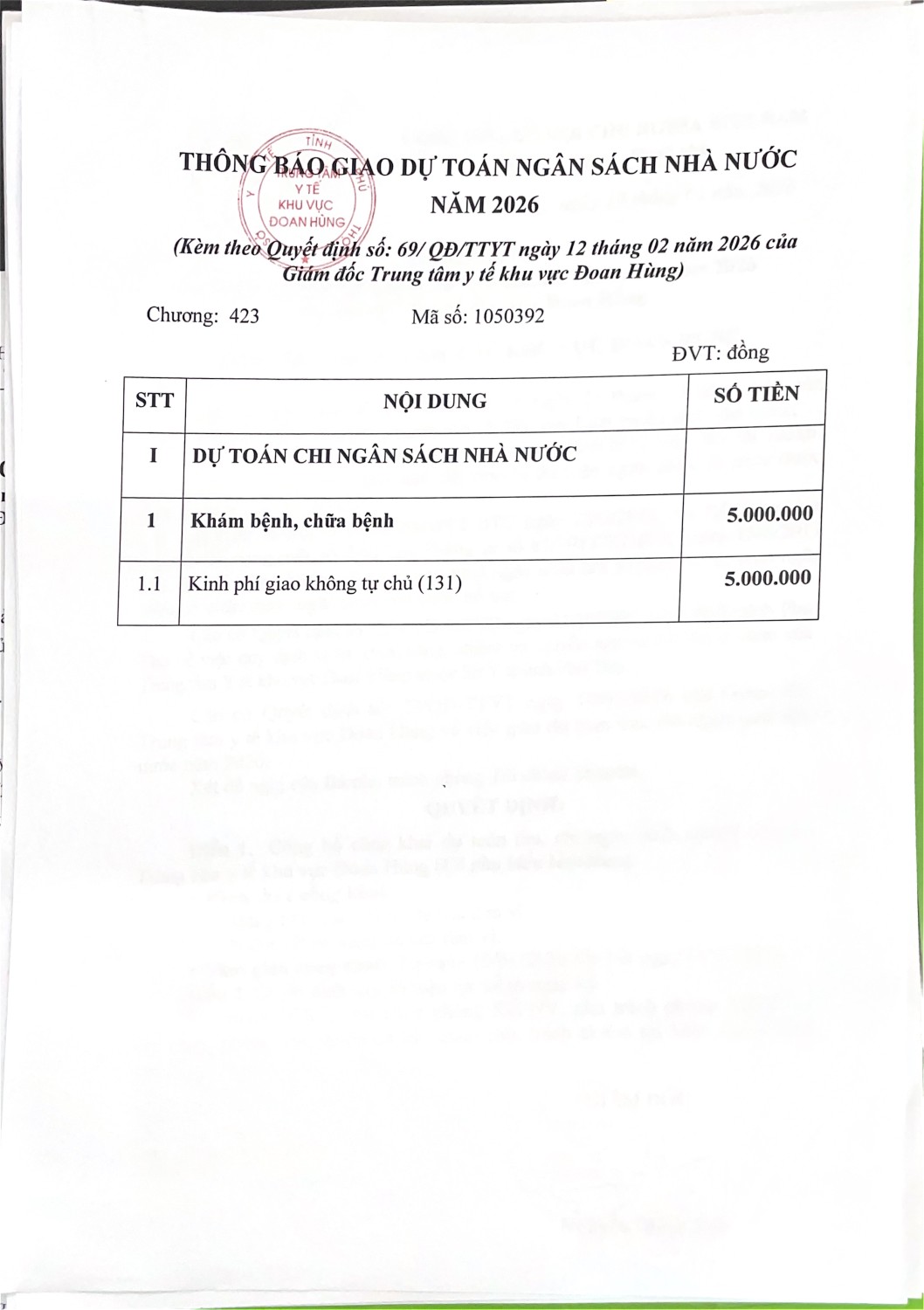 Quyết định về việc công bố công khai dự toán thu, chi ngân sách nhà nước năm 2026