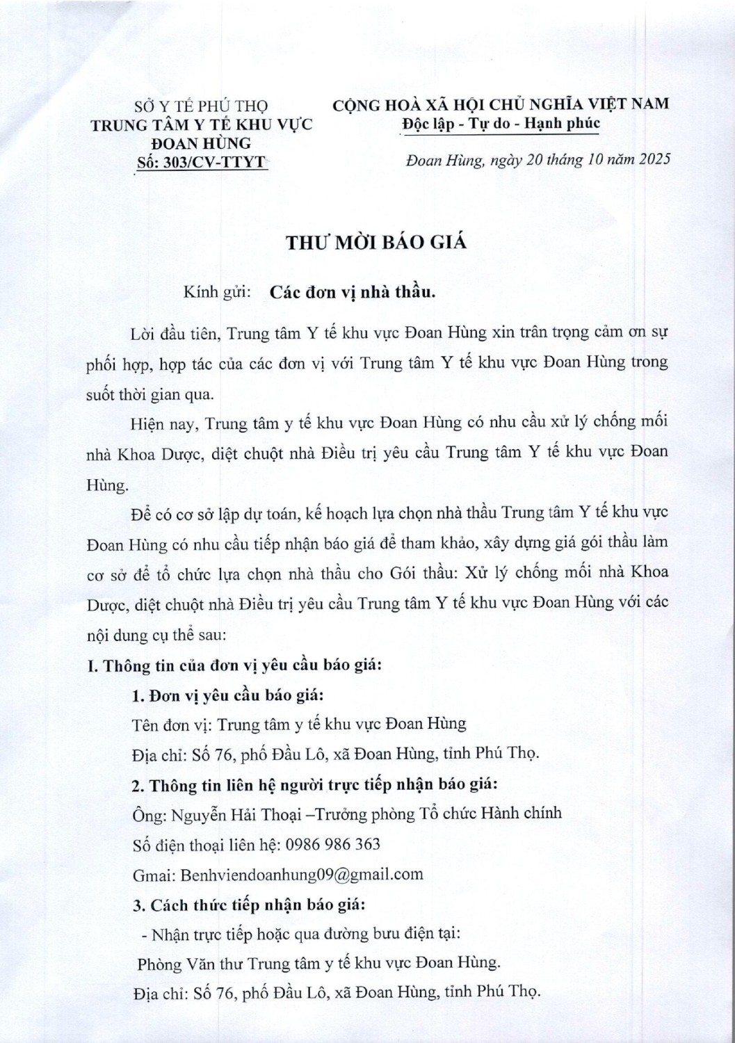 YÊU CẦU BÁO GIÁ