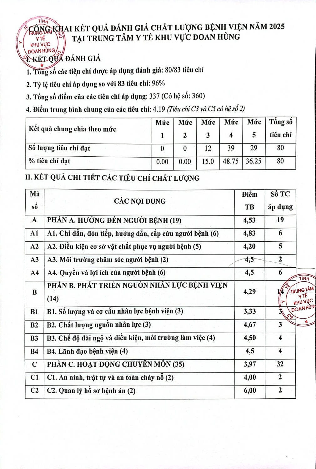Kết quả đánh giá chất lượng bệnh viện năm 2025