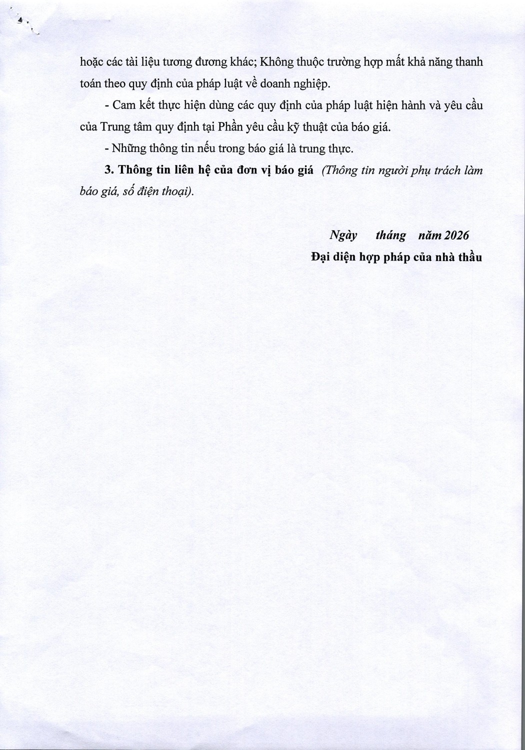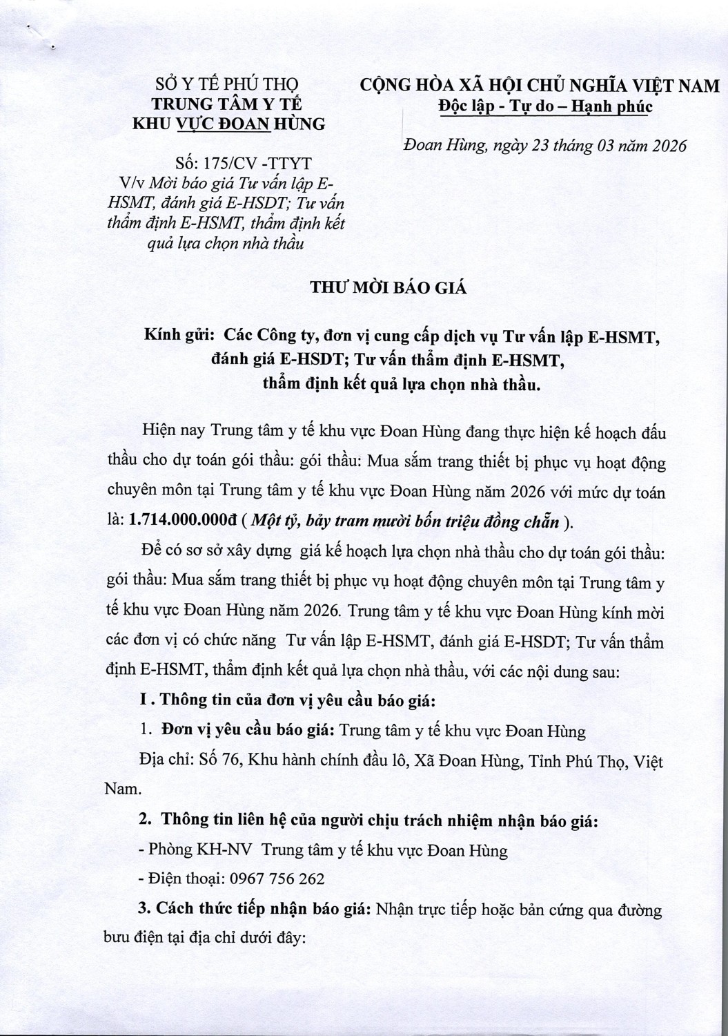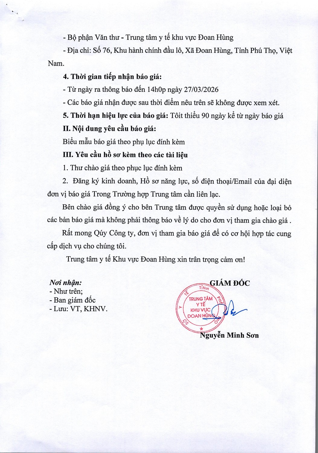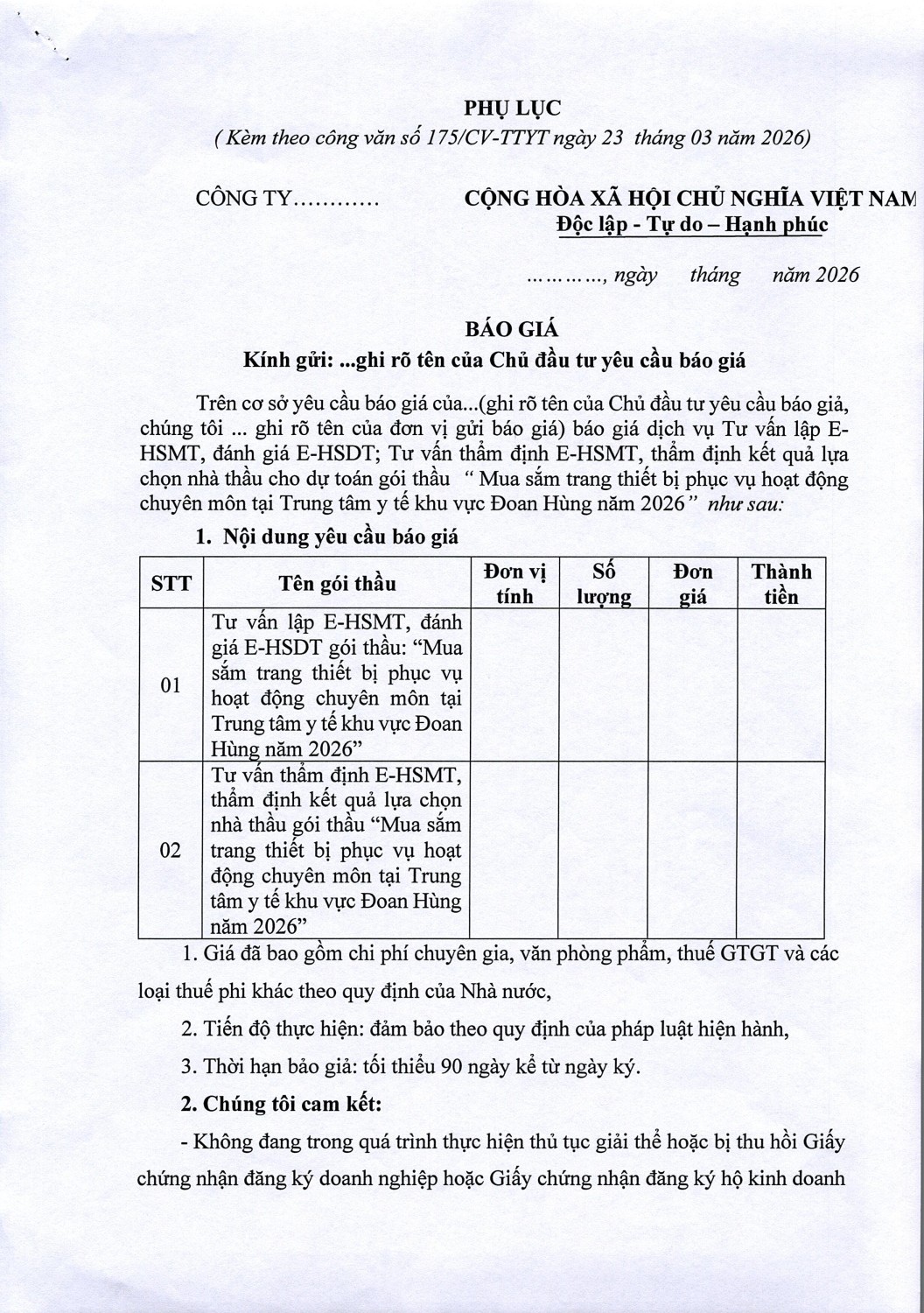 THƯ MỜI BÁO GIÁ