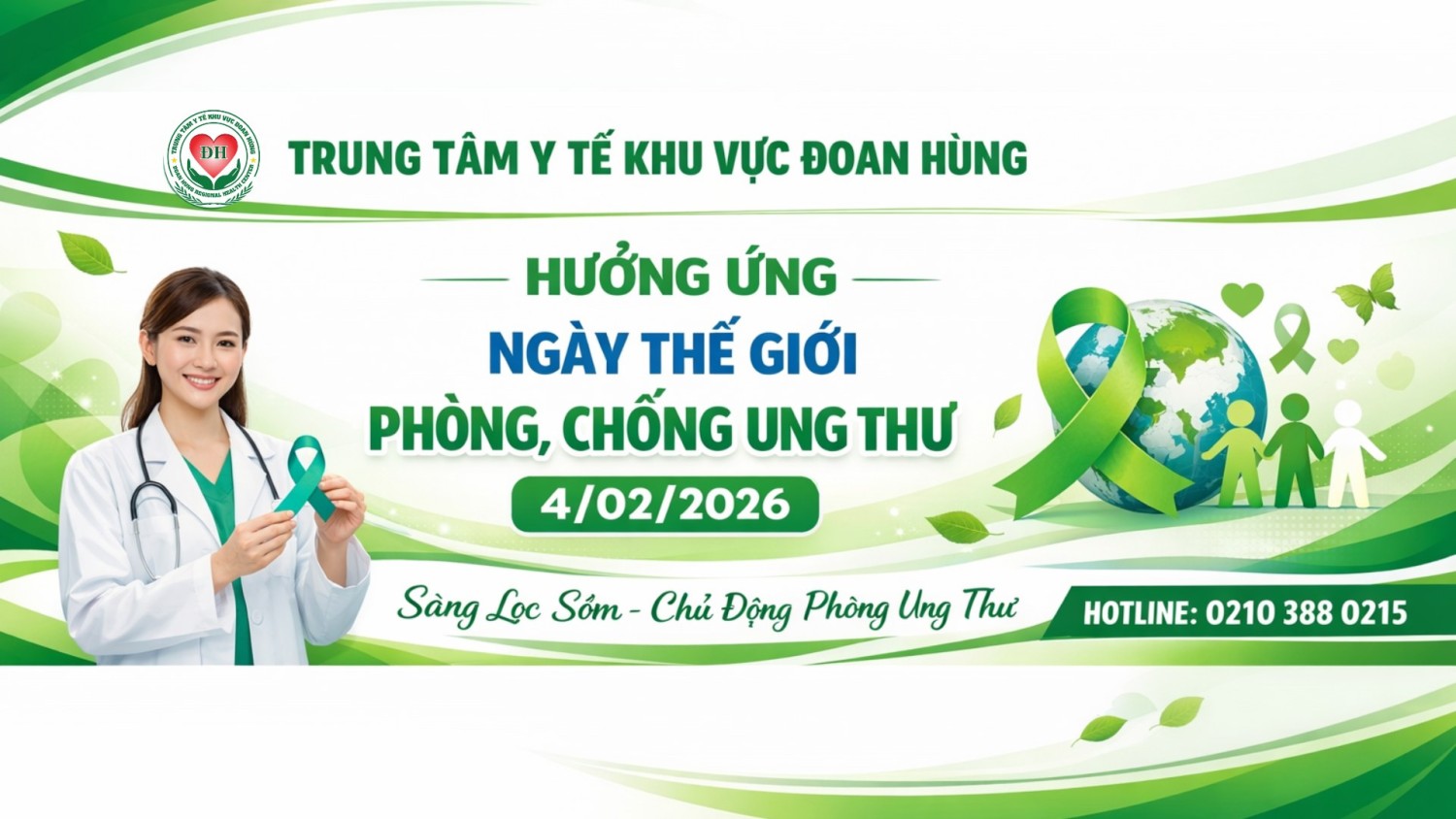 Ung thư hiện nay đang trở thành một trong những nguyên nhân hàng đầu gây tử vong, tuy nhiên nhiều loại ung thư hoàn toàn có thể phòng ngừa, phát hiện sớm và điều trị hiệu quả nếu được quan tâm đúng mức. Hưởng ứng Ngày Thế giới phòng chống ung thư 4/2, Trung tâm Y tế khu vực Đoan Hùng kêu gọi mỗi người dân hãy chủ động chăm sóc sức khỏe cho bản thân và gia đình thông qua khám sức khỏe định kỳ và sàng lọc ung thư theo từng độ tuổi.