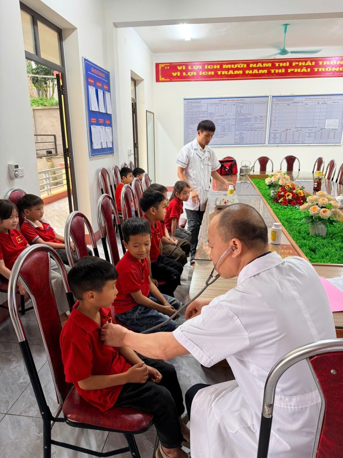 Thực hiện kế hoạch chăm sóc và bảo vệ sức khỏe học sinh, ngày 23/4/2026, Trung tâm Y tế khu vực Đoan Hùng đã phối hợp với các ban, ngành, đoàn thể địa phương, các nhà trường tổ chức triển khai chương trình uống t.h.u.ố.c tẩy g.i.u.n định kỳ cho học sinh tiểu học trên toàn địa bàn.