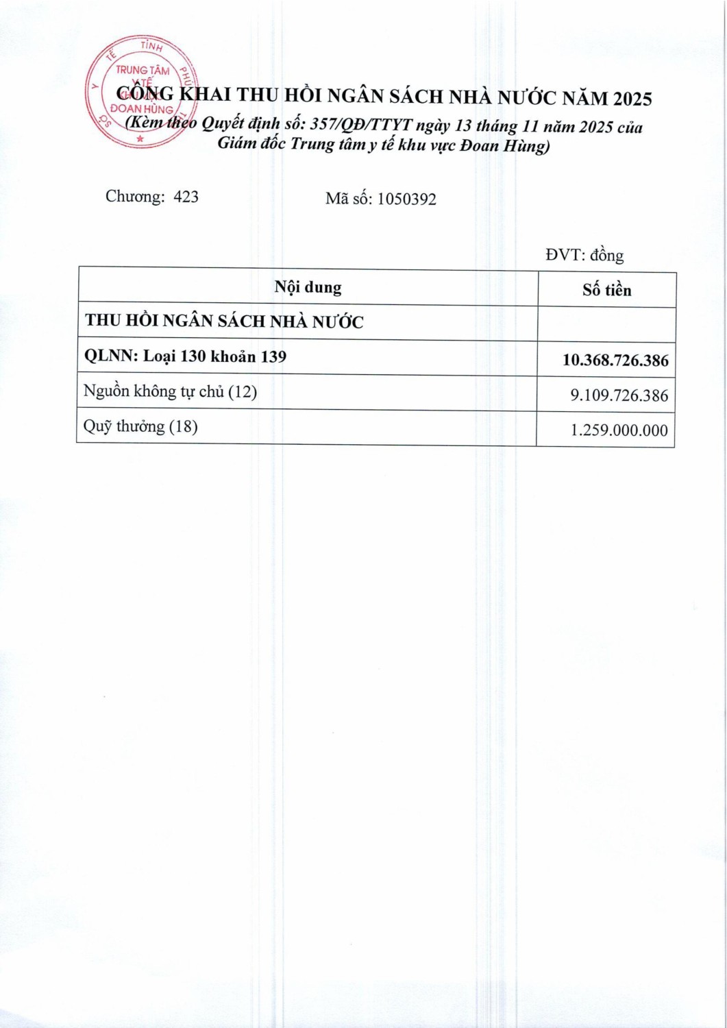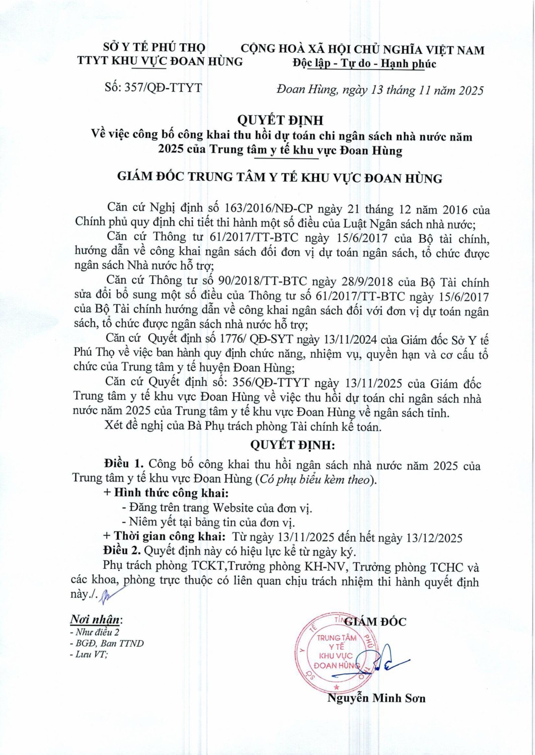 QUYẾT ĐỊNH VỀ VIỆC CÔNG BỐ CÔNG KHAI THU HỒI DỰ TOÁN CHI NGÂN SÁCH NHÀ NƯỚC NĂM 2025